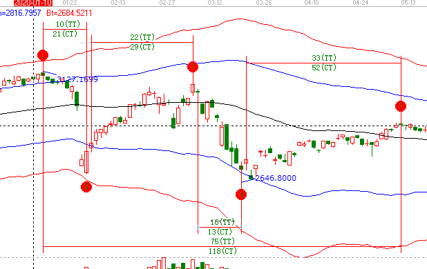 是否可以預(yù)期一下,下個循環(huán)時間:下跌+上漲=循環(huán)平均值≈38TT(40天左右);如果最猛烈的下跌時間是10TT左右,那么從5.19日算起,6.1日應(yīng)該是下一個低點(diǎn)時間。(這里5.11-5.19這段時間,不知道怎么處理,但歸到下跌時間內(nèi)又不合適)。