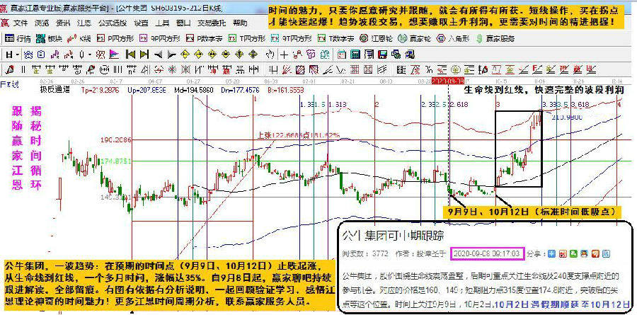 公牛集團(tuán),一波趨勢(shì):在預(yù)期的時(shí)間點(diǎn)(9月9日、10月12日)止跌起漲,從生命線到紅線,一個(gè)多月時(shí)間,漲幅達(dá)35%。自9月8日起,贏家聊吧持續(xù)跟進(jìn)解讀,全部留痕。有圖有依據(jù)有分析說(shuō)明,一起回顧驗(yàn)證學(xué)習(xí),感悟江恩理論神奇的時(shí)間魅力!
