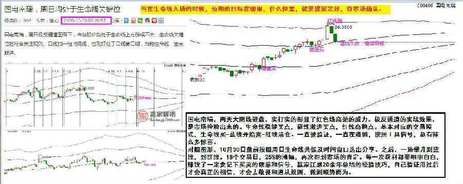 對照圖形,10月30日盤前按照周日生命線共振及時間窗口選出分享。之后,一路攀升到藍(lán)線,到紅線。18個交易日,25%的漲幅,再次得到市場的肯定。每一次獲利都要明明白白,賺錢了一定要記下買賣的依據(jù)和信號,贏家江恩20余年總結(jié)的經(jīng)驗技巧,自己驗證用過后才會真正的相信,才會去敬畏和遵從規(guī)則,做到順勢而為。