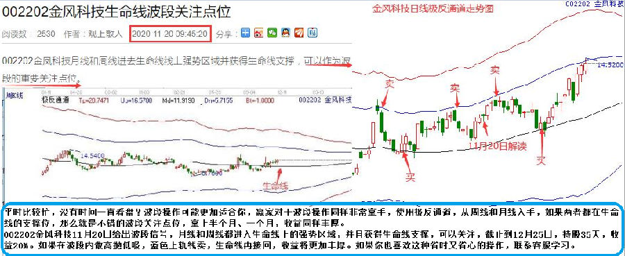 002202金風(fēng)科技11月20日給出波段信號,月線和周線都進(jìn)入生命線上的強(qiáng)勢區(qū)域,并且獲得生命線支撐,可以關(guān)注,截止到12月25日,持股35天,收益20%。如果在波段內(nèi)做高拋低吸,藍(lán)色上軌線賣,生命線再接回,收益將更加豐厚。