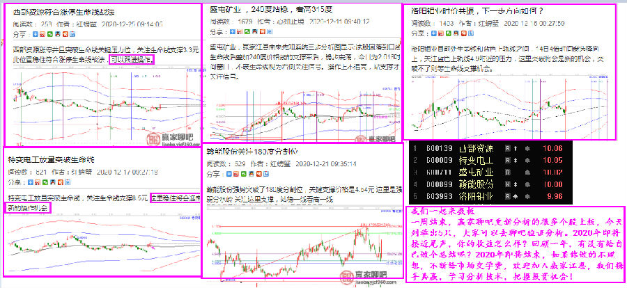 一周結(jié)束,贏家聊吧更新分析的很多個股上板,今天列舉出5只,大家可以去聊吧驗證分析。2020年即將接近尾聲,你的收益怎么樣?回顧一年,有沒有給自己做個總結(jié)呢?2020年即將結(jié)束,如果你做的不理想,不斷給市場交學(xué)費(fèi),歡迎加入贏家江恩,我們攜手共贏,學(xué)習(xí)分析技術(shù),把握投資機(jī)會!