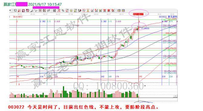 9月17日是聯(lián)泓新科的時(shí)間窗口,股價(jià)上行至紅色線外+價(jià)格循環(huán)阻力點(diǎn),時(shí)價(jià)四方,轉(zhuǎn)勢(shì)向下。