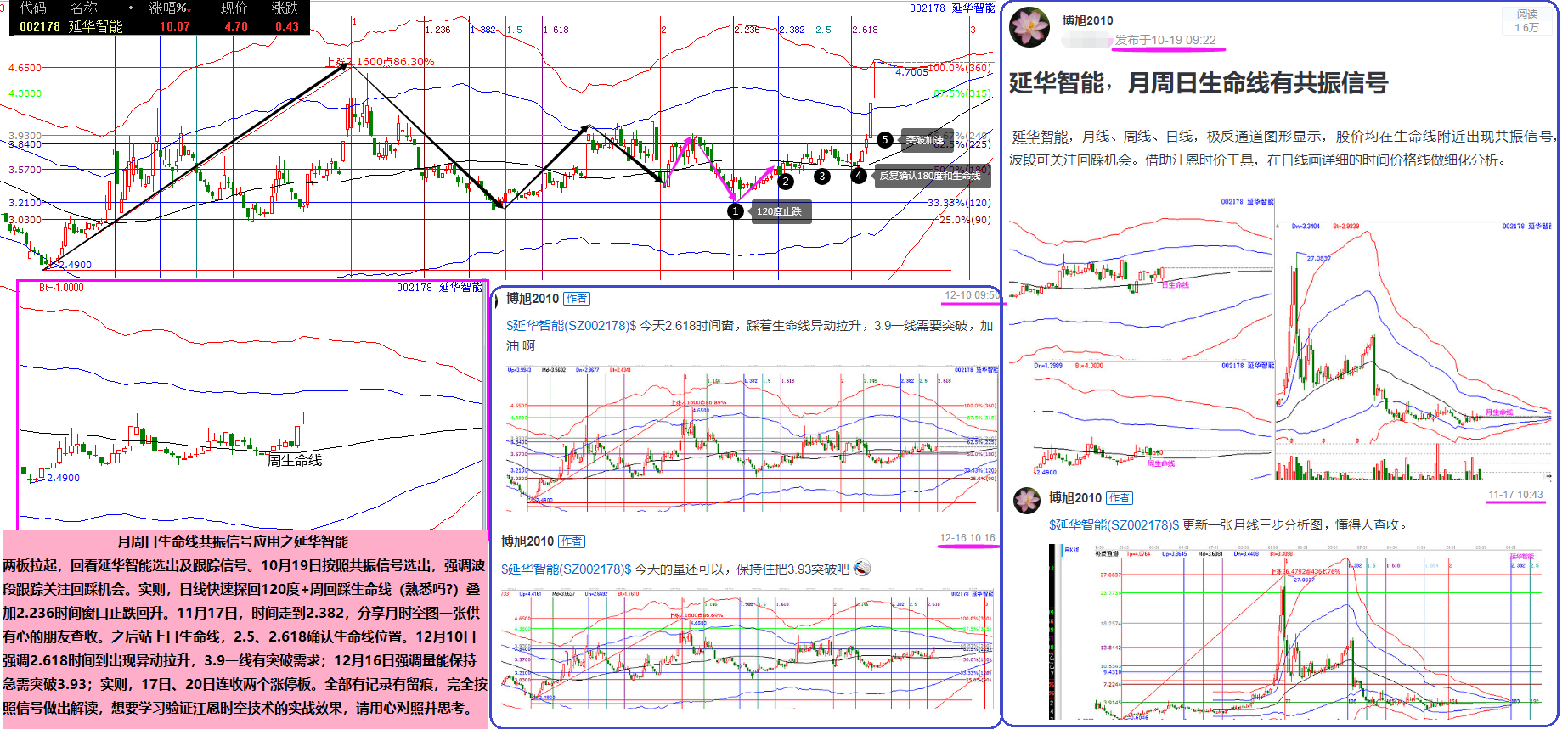 12月10日強(qiáng)調(diào)2.618時間到出現(xiàn)異動拉升,3.9一線有突破需求;12月16日強(qiáng)調(diào)量能保持急需突破3.93;