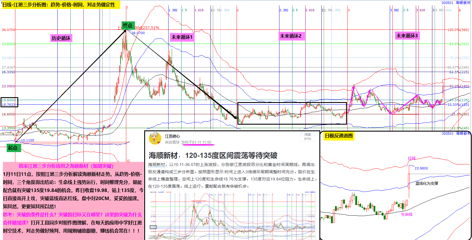贏家江恩三步分析應(yīng)用之海順新材(如期突破)