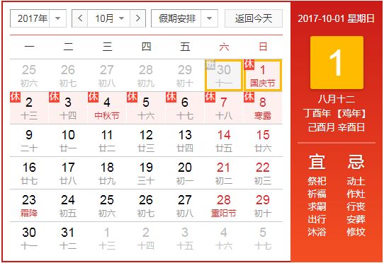 根據(jù)國家假期安排并結(jié)合贏家財富網(wǎng)實際情況,現(xiàn)定于2017年10月1日(周日)下午至2017年10月8日(周日)為國慶、中秋放假日期,放假期間網(wǎng)站暫??头稍兊认嚓P(guān)服務(wù),網(wǎng)站仍可正常使用,2017年10月9日(周一)在線咨詢等服務(wù)恢復(fù)正常。假期期間客戶如需咨詢相關(guān)業(yè)務(wù),可撥打值班電話:13333833889,進(jìn)行咨詢!具體的放假時間休息如下圖。