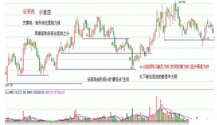 由階段K 線的最低點(diǎn)畫出的水平線,具有支撐、抬升和阻力的作用,而且多條谷底線無縫重合的精準(zhǔn)谷底線具有強(qiáng)大的支撐能力,投資者可以注意在支撐點(diǎn)位的操作機(jī)會(huì)。