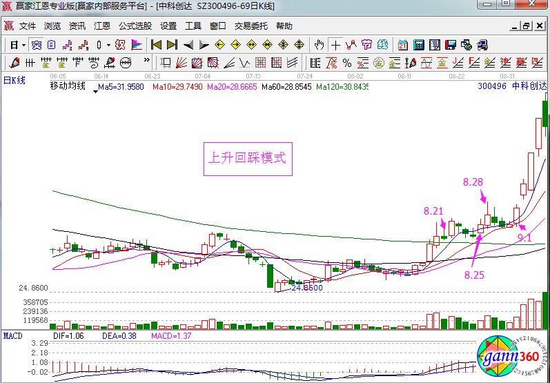 結(jié)合上面的圖形,我們可以看到這種模式在操作上是非??尚械?,并且在運(yùn)用中也是比較靈活的,市場(chǎng)出現(xiàn)的次數(shù)也是比較多,所以獲利的機(jī)會(huì)也是多的,如果是運(yùn)動(dòng)得當(dāng)?shù)脑?,那么就可以達(dá)到穩(wěn)定獲利的境界。及誒下來我們就來看中科創(chuàng)達(dá)的走勢(shì)圖。
