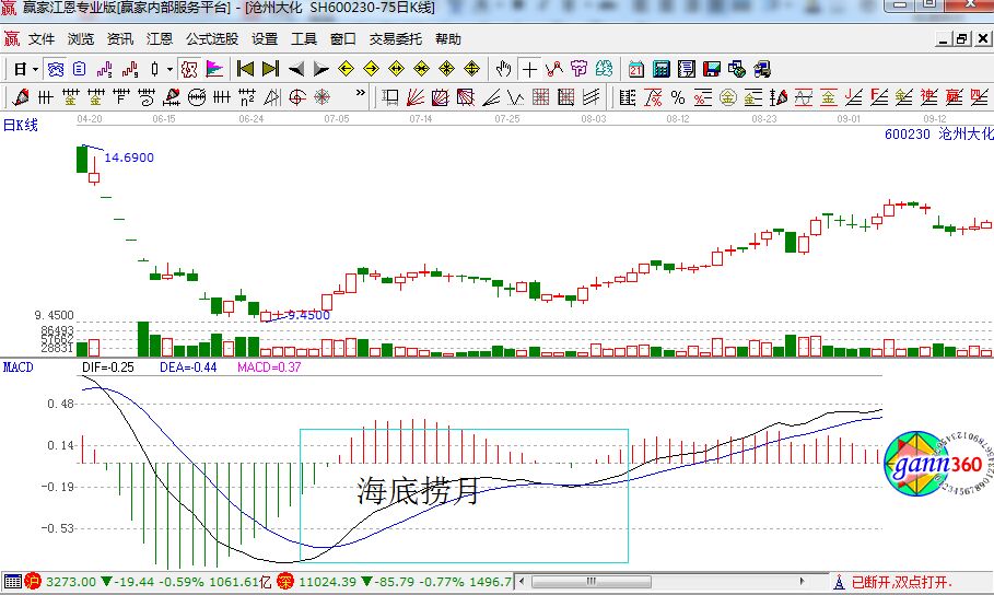 咨詢:13333833889macd指標是常用的指標之一,所以該指標的走勢同樣存在很多的形態(tài),其中就有一種海底撈月形態(tài)。相信絕大部分的新股民朋友對于此形態(tài)還不了解,今天我們就結合相應的圖形來進行講解。