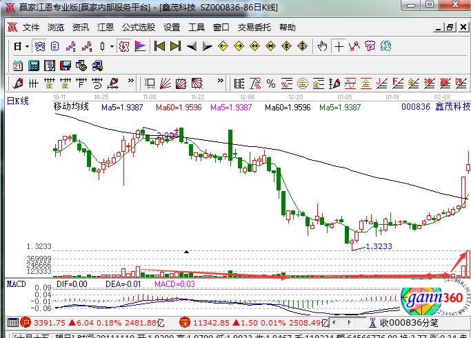 上圖是鑫茂科技的歷史走勢(shì)圖,這只股在經(jīng)過了長(zhǎng)期的下跌,成交量出現(xiàn)了萎縮、橫盤、放量,而在圖中最后一根的陽線穿越了黑色的生命線,顯然就符合了穿越生命線戰(zhàn)法,大家可以可以穿越生命線股價(jià)的時(shí)候進(jìn)行買入,這樣就可以在當(dāng)天獲得非常不錯(cuò)的盈利,可以在次日沖高回落的時(shí)候進(jìn)行賣出,這就是短線的操作,既簡(jiǎn)單又好掌握。