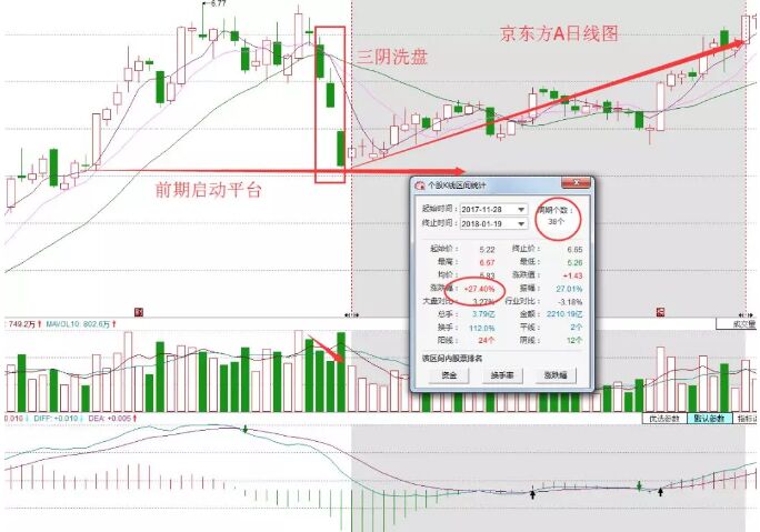 上圖是京東方A從2017年11月到今年1月份的走勢(shì)圖,從圖中可以看到:該股從創(chuàng)出6.77元的新高之后,股價(jià)隨后是處于高位震蕩狀態(tài)中,振幅也是進(jìn)一步的加大,資金謹(jǐn)慎情緒逐步的加大。