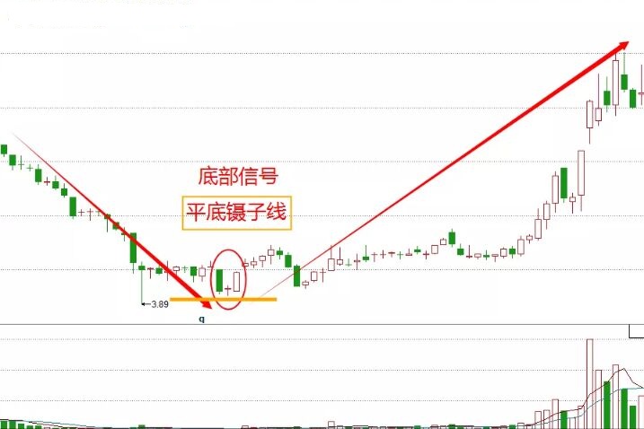 2、平底鑷子線。它是由兩根最低價位相同的K線形成,當(dāng)平底鑷子線出現(xiàn)在走勢底部時,行業(yè)將會轉(zhuǎn)為牛市。該形態(tài)一般第一天為長陰,第二天多頭集聚,使得一度行情上揚,但終究不敵空頭的勢力,行情仍舊下滑但并沒有能突破第一天最低點。第三天市場出現(xiàn)轉(zhuǎn)機收出長陽,市場由做空漸漸轉(zhuǎn)為作多,其他技術(shù)指標(biāo)也顯示了買進訊號。如下面的卓郎智能走勢圖。