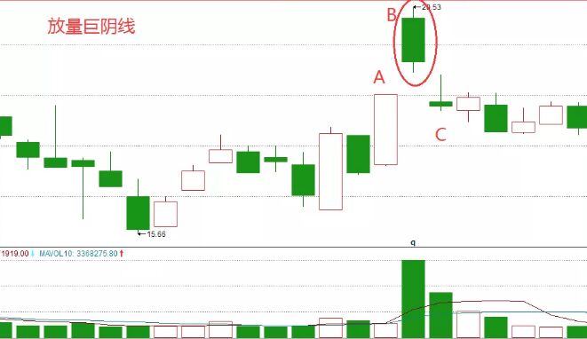 如下圖所示,這是達安股份的截圖,圖中在高位出現(xiàn)了一根放量巨陰線的出現(xiàn)。我們可以看到個股在上漲了一段時間之后,直接出現(xiàn)跳空高開走勢,在創(chuàng)出近期新高之后就開始高開低走行情。