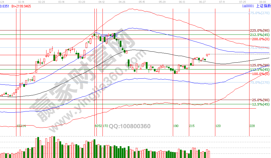 3、4號是贏家江恩系統(tǒng)時間周期工具預(yù)判的指數(shù)7月第一個時間窗口,周二十字星報收為近期方向選擇做準(zhǔn)備。1號大勢分析中談到,指數(shù)從贏家江恩一直強(qiáng)調(diào)的2840反彈至今已上行200點,月線極反通道生命線是3065點,此點位同短周期15、30、60分鐘藍(lán)色上軌線形成共振,江恩輪中輪90度3051點,兩個趨勢工具結(jié)合得出3051-3065是未來幾天壓力位,此位置相比2840處已不具備大幅開新倉要求,查看先行指數(shù)上證50日線圖會更清晰,不開新倉不代表看空,目前還未出現(xiàn)反彈結(jié)束信號(謹(jǐn)防極反通道周期共振反壓),提高止賺位保持一定倉位持倉做應(yīng)對,7月3號盤中壓力是135度3055點、180度3067點,盤中支撐是90度3036點、45度3016點,今明天是7月第一個時間窗口。操作策略,指數(shù)極反通道生命線上安全區(qū)域震蕩上攻,反彈動作還在延續(xù),3051-3067區(qū)間附近高倉位可以分批兌現(xiàn)利潤,整體持倉保持3-5成。