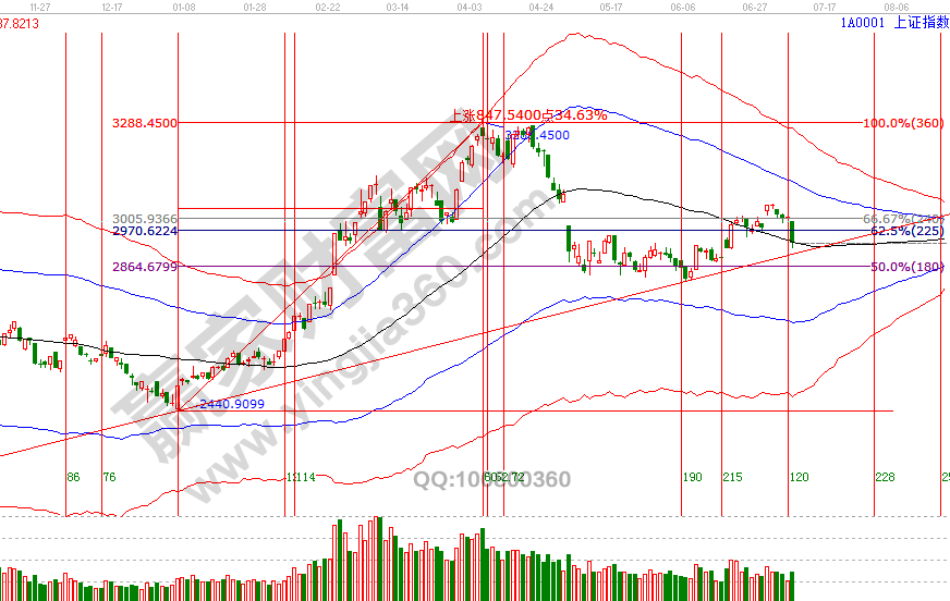 2號贏家江恩系統(tǒng)極反通道短周期發(fā)出警示信號,一直到5號午盤重新解讀,按系統(tǒng)規(guī)則,指數(shù)按預期回探至60分鐘生命線,并提出未來走勢一種是周期共振警示解除,一種是進入新的修整周期,指數(shù)今日早盤快速擊穿60分鐘生命線,并帶動日線級別擊破,則代表進入新修整周期,10號、15號時間窗口關(guān)注指數(shù)與生命線關(guān)系,預計近日在生命線下附近修整后會有一次對快速下跌的反彈,具體空間點位上,江恩價格四方形、波段百分比延伸線顯示2894、2878為強支撐,贏家學員可以動態(tài)參考60分鐘藍色下軌線。操作策略,指數(shù)回踩至極反通道生命線處,2822反彈動作還未明確結(jié)束,未來一段時間都會整體持倉保持3成左右。