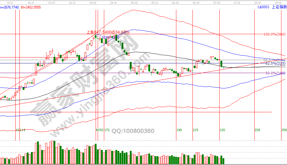 大盤全天在贏家江恩系統(tǒng)極反通道黑色生命線下震蕩,盤中反擊時(shí)短周期走勢力度不夠,保持待指數(shù)到達(dá)60分鐘極反通道藍(lán)色下軌線后再做解讀觀點(diǎn)。近日關(guān)注震蕩時(shí),如盤中下探觸及至60分鐘關(guān)鍵位市場表現(xiàn),是否有參與性機(jī)會(huì),出現(xiàn)信號(hào)會(huì)在贏家江恩學(xué)員區(qū)做動(dòng)態(tài)解讀,新周期的修整結(jié)束標(biāo)志是收復(fù)江恩波段百分比零度位2966點(diǎn),對(duì)于反彈博弈位,應(yīng)該按工具規(guī)則買在支撐,待指數(shù)未來突破2966就錯(cuò)過最佳位,不理解原因就好好思考贏家江恩投資十六字真言“看大做小、看長做短、牛長熊短、紅肥綠瘦”。7月10號(hào)盤中壓力是225度2944點(diǎn)、270度2961點(diǎn),盤中支撐是135度2911點(diǎn)、90度2894點(diǎn)。操作策略,指數(shù)回踩至極反通道生命線處,2822反彈動(dòng)作還未明確結(jié)束,時(shí)間窗口附近關(guān)注2894、2878點(diǎn),未來一段時(shí)間整體持倉保持3成左右。