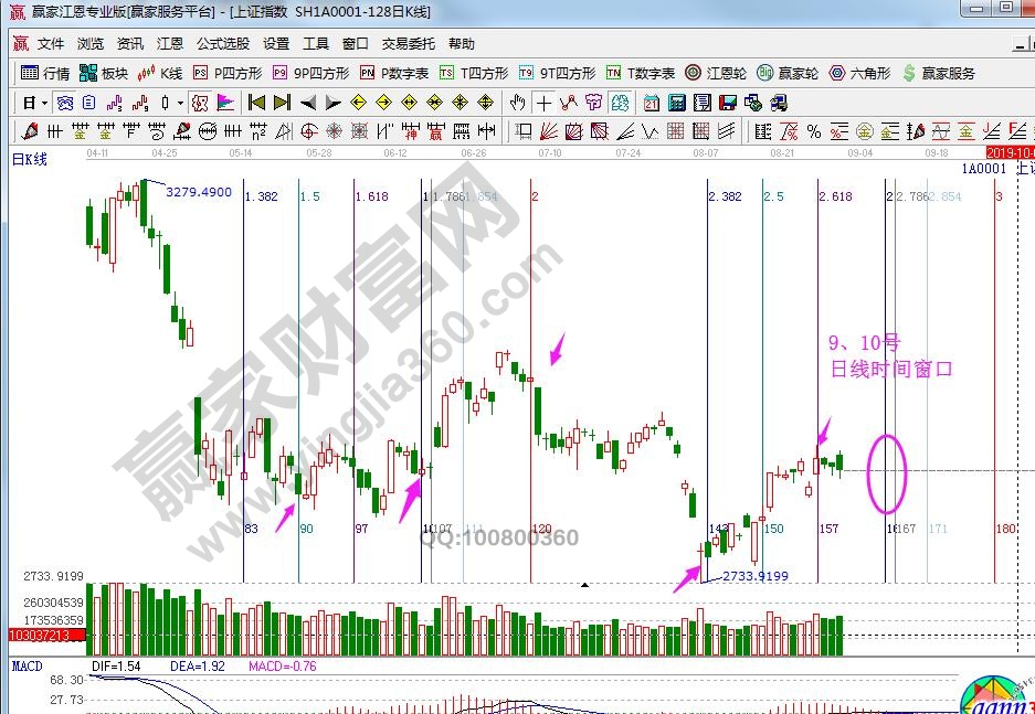 ☆依據(jù)贏家江恩理論系統(tǒng)江恩黃金時(shí)間周期線提示:以2019年1月4號(hào)(2440點(diǎn))為起點(diǎn),2019年4月8號(hào)(3288點(diǎn))為終點(diǎn)做圖,9(10)號(hào)、16號(hào)、27號(hào)時(shí)間窗口。