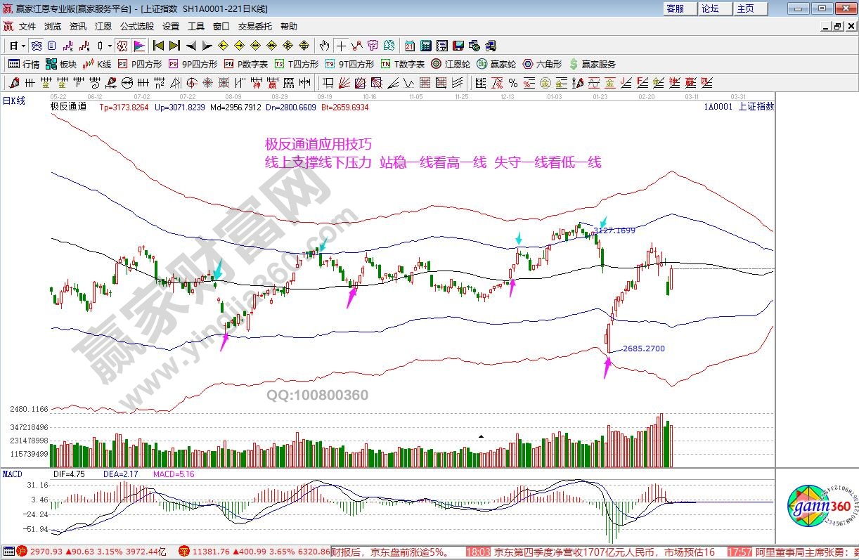 ★依據(jù)贏家江恩系統(tǒng)自由時(shí)間價(jià)格計(jì)算器(江恩箱)分析:指數(shù)收盤正好在上升3*2線2970一點(diǎn)不差,按規(guī)則短期看多?!?/p>