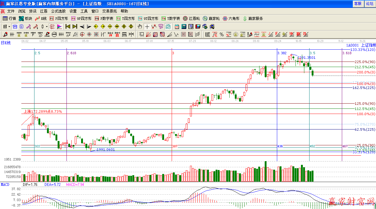 ☆依據(jù)贏家江恩系統(tǒng)黃金時間周期線提示:今日霜降節(jié)點,指數(shù)回踩生命線支撐,短期關(guān)注此位置支撐。