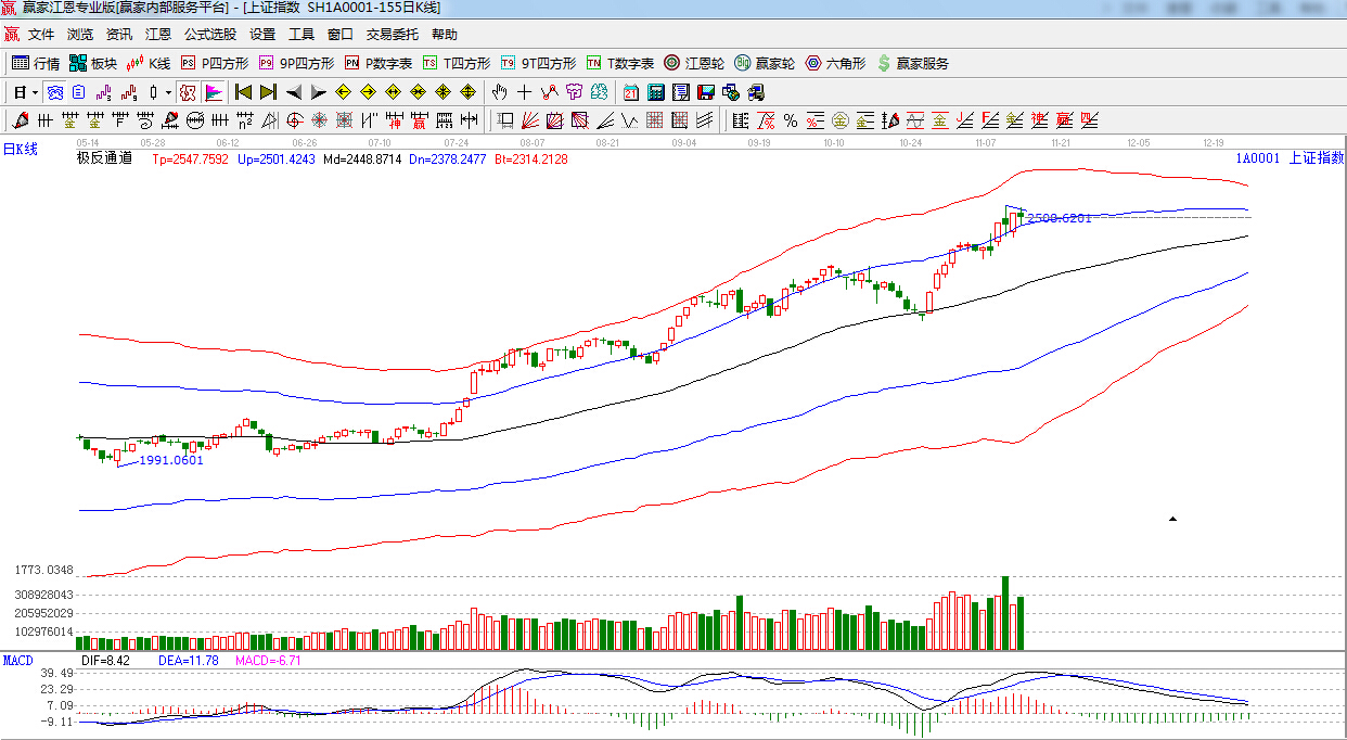 咨詢:13333833889周四早盤,兩市微幅高開,滬指小幅沖高后震蕩回落,全天圍繞江恩180度震蕩,終盤再報十字星,滬指報2485.61點,跌幅為0.36%,深成指報8305.08點,跌幅為1.25%,量能較昨日有所放大。