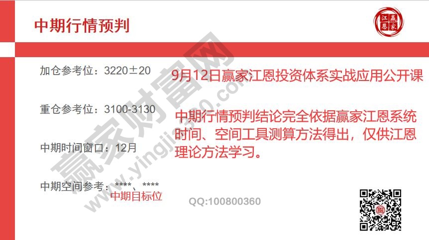 8月初贏(yíng)家團(tuán)隊(duì)對(duì)大盤(pán)做定性,市場(chǎng)進(jìn)入于第一階段的修整期,在此期間市場(chǎng)不創(chuàng)新高走勢(shì)為震蕩緩跌,以大箱體底倉(cāng)+活動(dòng)倉(cāng)做應(yīng)對(duì)策略,在時(shí)空測(cè)算方面,9月12號(hào)周六公開(kāi)課對(duì)外揭秘市場(chǎng)中期時(shí)空參考信號(hào)(8月份用三節(jié)內(nèi)部課已對(duì)正式學(xué)員提前做解讀)、自公布測(cè)算空間數(shù)據(jù)后,市場(chǎng)已三次觸及3220位置,具體時(shí)間分別是9月11日、9月29/30日、10月25日,前兩次均有不同程度的反彈,本次對(duì)市場(chǎng)的影響44周周報(bào)略有描述,既定28號(hào)內(nèi)部培訓(xùn)課講述未來(lái)一段時(shí)間的操作應(yīng)對(duì)策略。