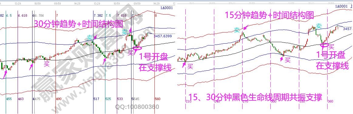 1號(hào)滬指再度逼近7月3458高點(diǎn),突破高點(diǎn)勢(shì)在必得。30號(hào)上攻日線(xiàn)江恩箱8*1線(xiàn)與極反通道藍(lán)色上軌線(xiàn)共振壓力回落,對(duì)1號(hào)市場(chǎng)分析預(yù)判中談到,60分鐘生命線(xiàn)上運(yùn)行市場(chǎng)還將延續(xù)反攻,此結(jié)論是從短周期時(shí)間結(jié)構(gòu)中推導(dǎo)得出。空間上學(xué)員可以打開(kāi)工具,通過(guò)極反通道查看30、15分鐘K線(xiàn)圖,周期共振信號(hào)直觀(guān)、清晰可見(jiàn),在贏(yíng)家江恩體系中此信號(hào)是解決如何確立買(mǎi)賣(mài)點(diǎn),市場(chǎng)流傳一句會(huì)買(mǎi)的是徒弟,會(huì)賣(mài)的是師傅,而該信號(hào)不僅解決了買(mǎi)點(diǎn),更解決了賣(mài)點(diǎn),同時(shí)成功率達(dá)85%以上,并且信號(hào)出現(xiàn)就是空間拐點(diǎn),是廣大投資者所期望的買(mǎi)在低點(diǎn)賣(mài)在高點(diǎn)模式。2號(hào)下午3:30將在學(xué)員群講解此模式實(shí)戰(zhàn)應(yīng)用技巧,聽(tīng)課方式聯(lián)系贏(yíng)家工作人員。