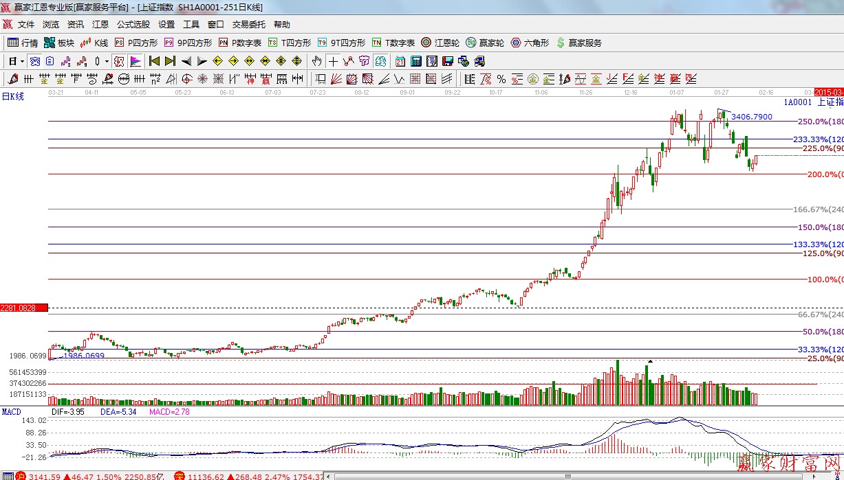 ★依據(jù)贏家江恩理論系統(tǒng)波段百分比提示:江恩百分比0度位置3039點(diǎn),90度與120度位置是短期反抽的壓力區(qū),與其它指標(biāo)共振。