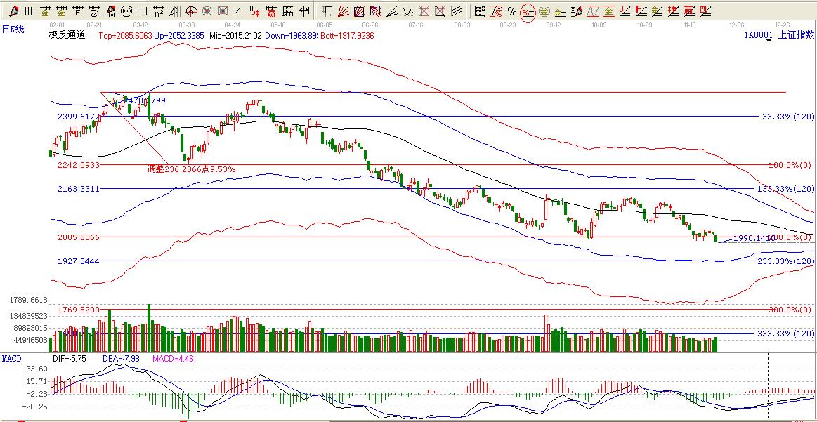 ☆依據(jù)贏家江恩系統(tǒng)極反通道提示:大盤處于極反通道中間位置,極反通道下軌位置1928點.生命線下方弱勢區(qū)域。多看少做。