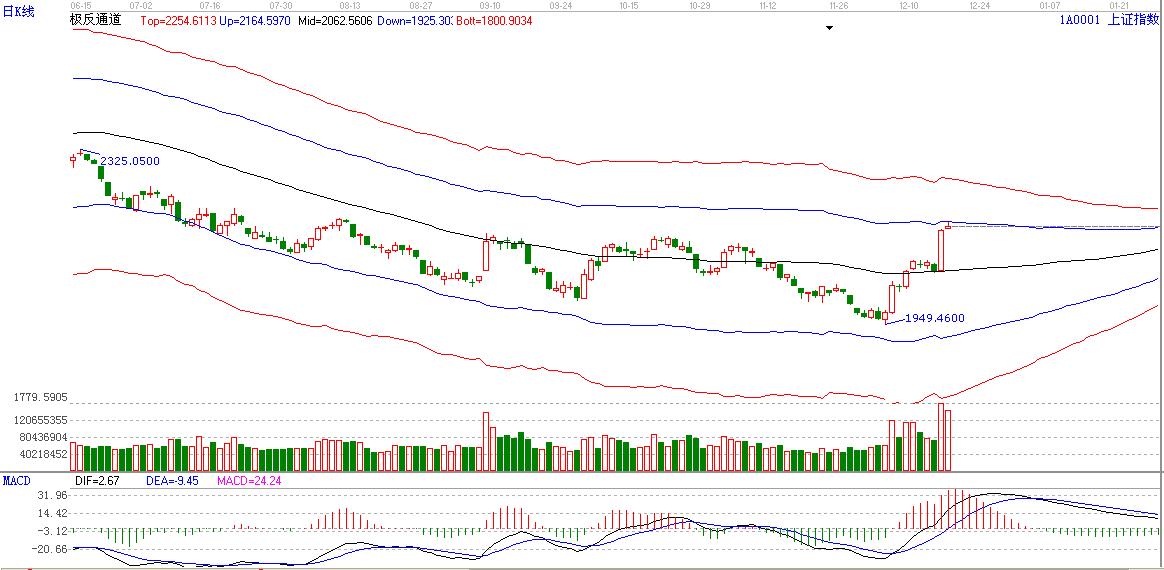 綜上所述:大盤上行極反通道生命線直接攻擊極反通道上軌,上軌壓力2169.47。紅色上軌位置2240附近。關(guān)注 極反通道上軌的得失。