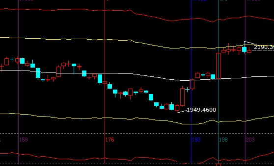指數(shù)在極反通道外軌線下震蕩運行,近兩日收盤價低于江恩多空戰(zhàn)線短期線下,結(jié)合量能及長時間橫盤,市場短期轉(zhuǎn)向的信號越來越強; 30分鐘生命線是2158附近,此線不破未來產(chǎn)生的盤中反抽也是風(fēng)險警示信號,投資者需要對手中所持個股提高止贏位保護收益,短周期生命線支撐2135-2140,外軌線阻力2168-2173;