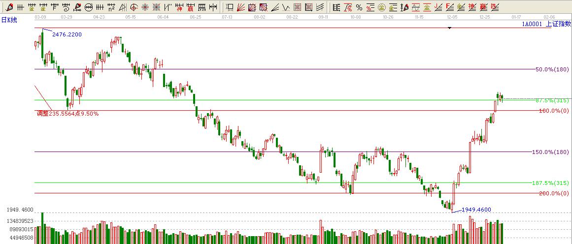 ★依據(jù)贏家波段百分比伸線提示:大盤回踩315度位置壓力2270獲得支撐,上方壓力2360附近180度位置。