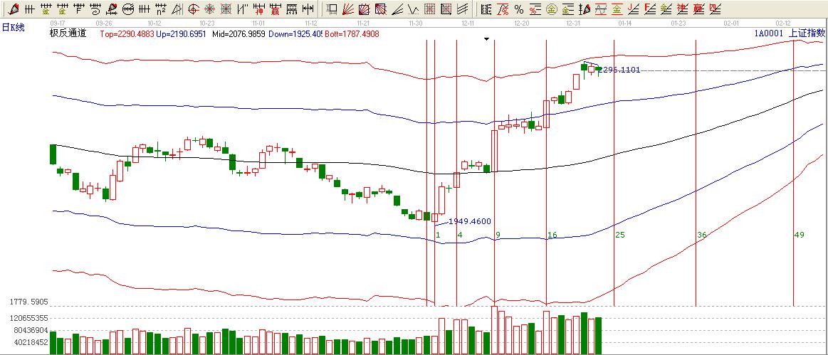 綜上所述:大盤短期波段百分比315度位置2270構(gòu)成短期強(qiáng)支撐。上方上軌壓力2301點(diǎn)。