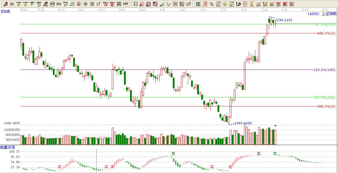 綜上所述:大盤短期波段百分比315度位置2270構(gòu)成短期強(qiáng)支撐。上方上軌壓力2301點(diǎn)。