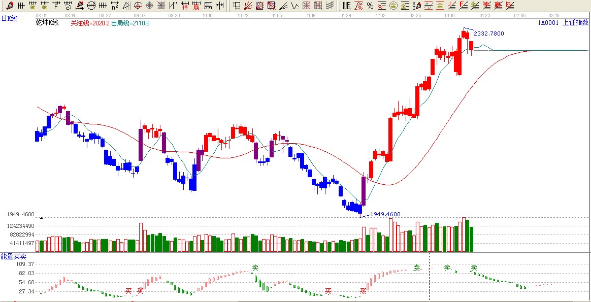 ★依據(jù)贏家乾坤K線提示:大盤在紅色區(qū)間,跌破出局線,短線謹(jǐn)慎看多。