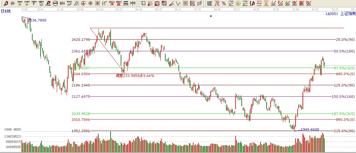 ★依據(jù)贏家波段百分比伸線提示:大盤依然在315度2270上方運(yùn)行,下一位置就是其180度位置壓力2360附近了。315度位置不破看多。