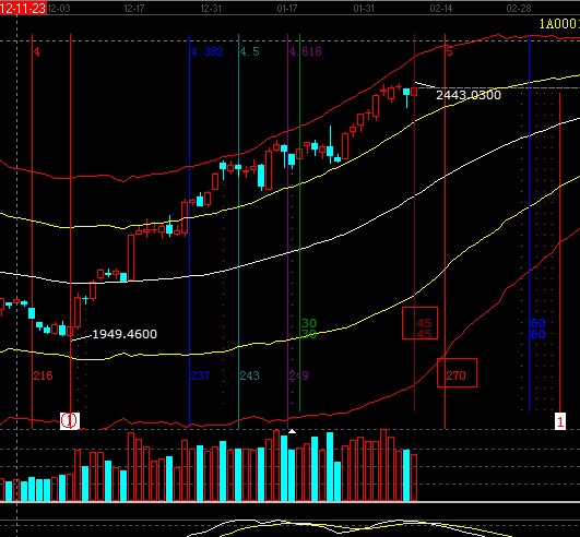 大盤自1949點(diǎn)已運(yùn)行45個(gè)交易日,一舉突破站穩(wěn)生命線及強(qiáng)勢外軌線線,整體趨勢生命線不破做多觀點(diǎn)不變,操作可通過提升止損位保護(hù)收益或倉位上做高拋低吸降低成本,21號(hào)是本周時(shí)間窗口,短期支撐2425-2414,阻力2446-2460;