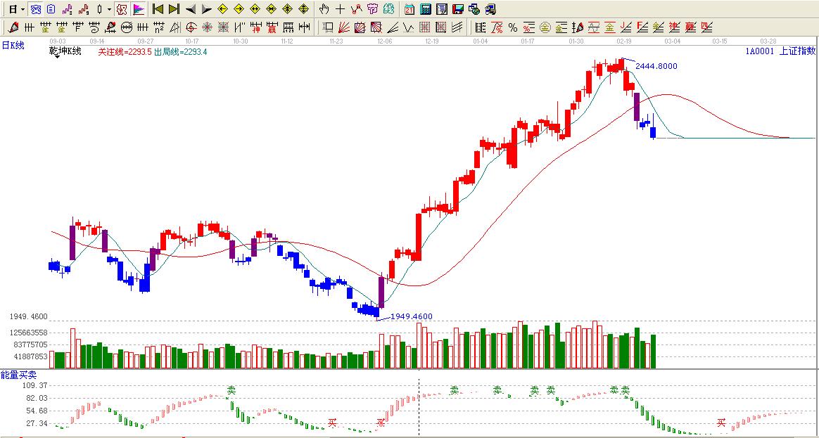☆依據(jù)贏家乾坤K線提示:大盤處于藍(lán)色區(qū)間,看空做空。