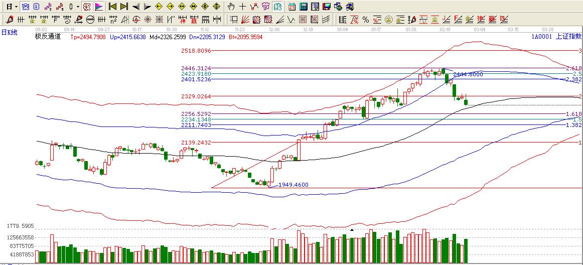 ☆依據(jù)贏家黃金價(jià)格延伸線提示:大盤破位反抽黃金分割延伸線2倍位置遇阻回落,短期不過(guò)看低一線至1.618位置2255附近.