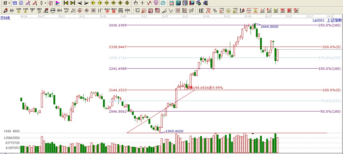 ★依據(jù)贏家江恩系統(tǒng)極反通道提示:大盤再度上極反通道生命線2307點(diǎn),按照極反通道法則:極反通道生命線不破看高至極反通道藍(lán)色上軌2457.