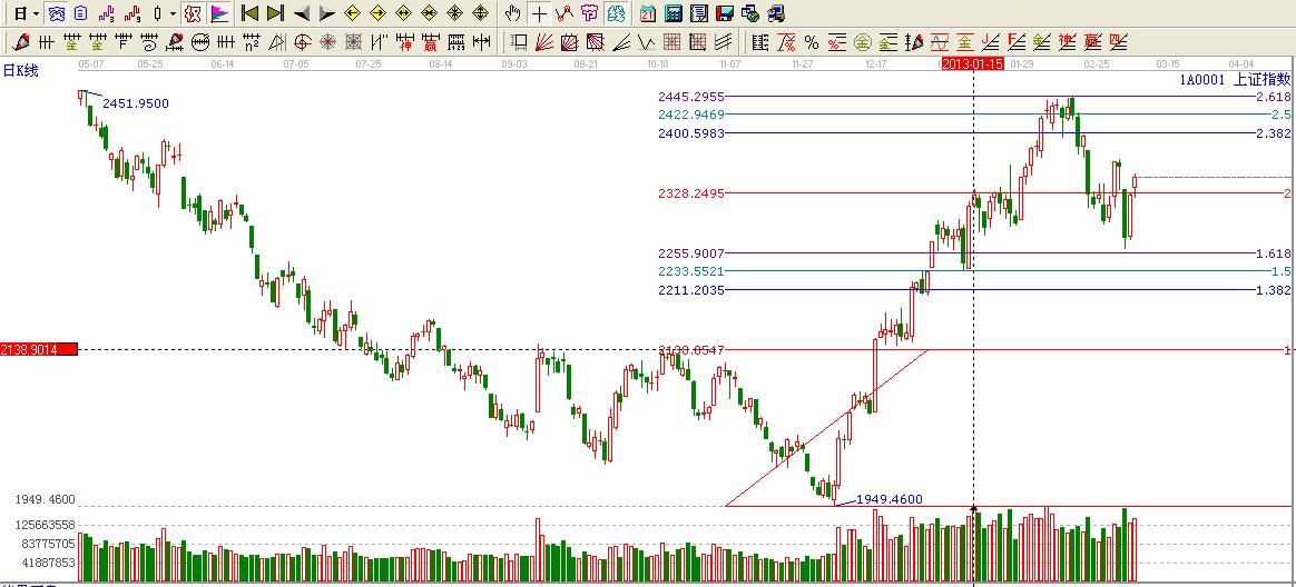 ★依據(jù)贏家黃金價格延伸線提示:大盤處于2倍延伸位置2325上方,按照贏家工具規(guī)則2倍位置不破看高一線至2.382位置2397點附近。