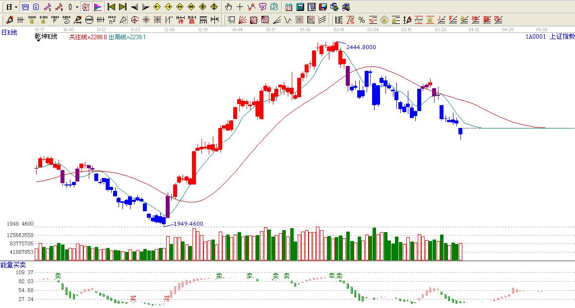 ☆依據贏家乾坤k線提示:大盤處于藍色區(qū)域內,看空。