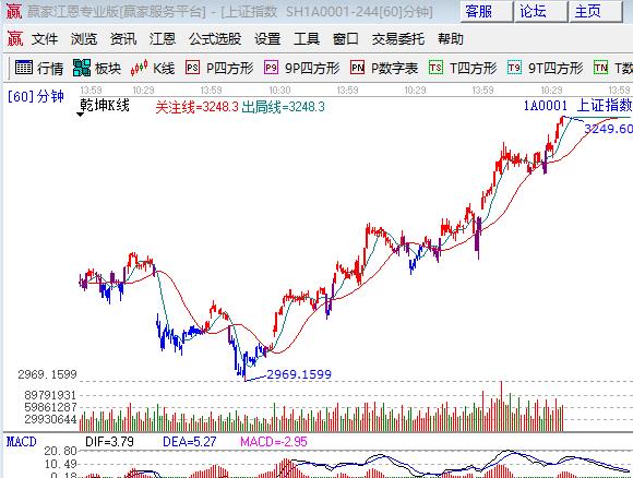 咨詢:13333833889周一、周二大盤兩根陽線從極反通道外軌線直逼紅色外軌線,深成指和中小創(chuàng)同步上漲。板塊方面煤炭有色、石油、鋼鐵、保險等權(quán)重股領(lǐng)漲;題材方面,年報高送轉(zhuǎn)、次新依然是盤中熱點,互聯(lián)網(wǎng)金融尾盤崛起,個股普漲成交量有所放大。技術(shù)方面,突破股票分析軟件江恩百分比第二個循環(huán)的零度位置3234點,上方45度是3271點。極反通道紅色強勢外軌線是3283點,短周期藍色外軌線是3260位置,操作思路為自10份建立的波段倉待指數(shù)進入3260-3280區(qū)間選擇高拋2成,短線2成活動倉繼續(xù)做差價。贏家操作名言“逃頂晚一步不如早一步,抄底早一步不如晚一步”。3234、3223為日內(nèi)支撐,3260、3271為日內(nèi)阻力,僅供參考,不構(gòu)成任何投資建議。