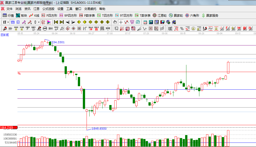 咨詢:13333833889指數(shù)如期延續(xù)上攻局勢(shì),并且放量突破極反通道強(qiáng)勢(shì)外軌線,根據(jù)市場(chǎng)運(yùn)行規(guī)律量能跟隨不上將以橫盤(pán)進(jìn)行資金板塊轉(zhuǎn)移,從整體運(yùn)行動(dòng)能看指數(shù)還將保持震蕩上攻,因此策略上以持股為主,尋找有事件推動(dòng)或強(qiáng)勢(shì)回落的個(gè)股進(jìn)入布局;盤(pán)面板塊方面在優(yōu)先股及8月數(shù)據(jù)利好帶動(dòng)下,權(quán)重股銀行、券商、證券強(qiáng)勢(shì)拉升帶動(dòng)指數(shù)突破2200,題材股票退潮,但這種現(xiàn)像只是資金一種運(yùn)行方式,指數(shù)穩(wěn)定后仍將是這類(lèi)個(gè)股表現(xiàn);