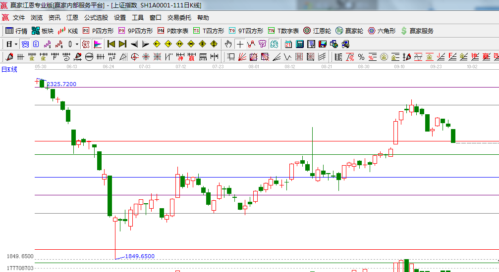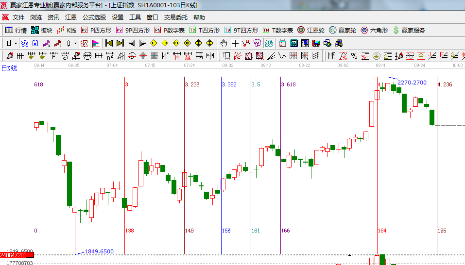 咨詢:13333833889研究歷史預測未來是江恩理論代名詞,贏家江恩系統(tǒng)則是依據(jù)江恩理論的核心理論自然規(guī)律而研發(fā),一直以來直觀的通過工具理性的分析判斷指數(shù)、個股的走勢,近期指數(shù)的走勢一步步的在安著分析預判的運行,如昨天分析所談到60分鐘生命線2195的失守將展開日線的正式調(diào)整,市場今天破位后出現(xiàn)快速下跌,這種格局要持續(xù)到節(jié)后的一周左右的時間里才會有所緩解,因此操作上放慢節(jié)奏,權(quán)重股的調(diào)整將指數(shù)帶動下來,為后期上攻拉空間,虧損過多的個股不需要出局,做出減倉尋找機會補倉;假期前還有兩個交易日,假期效應會再現(xiàn);