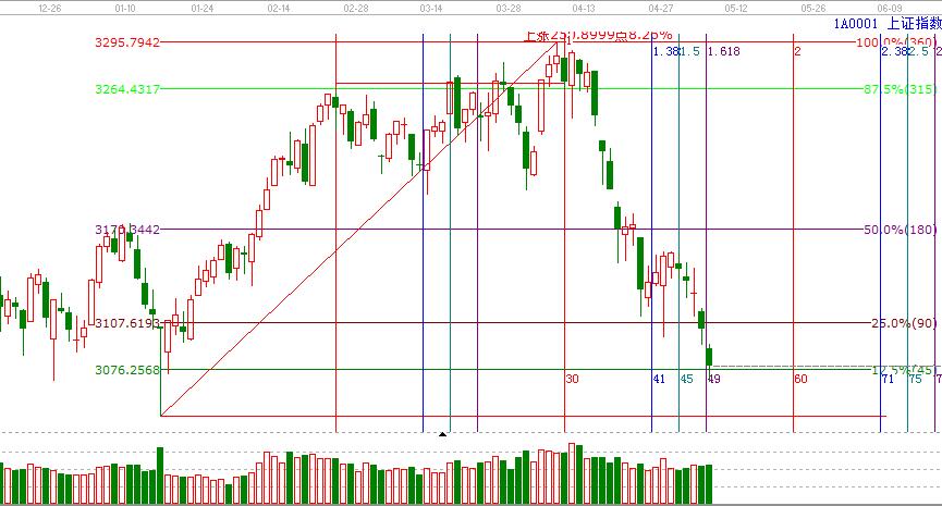 依據(jù)贏家江恩技術(shù)工具分析得出:周一,滬指低開低走,直奔3075點,小幅反彈后再次回落,最低試探極反通道藍色下軌線3067點后回升,收盤在3078點,極反通道,物極必反,目前藍色下軌線附近,超跌反彈隨時可能發(fā)生,百分比價格上3075點的得失也非常重要,重點觀察5月9日的量價表現(xiàn),操作上,做好分批低吸的準(zhǔn)備,機會上,可重點關(guān)注質(zhì)地優(yōu)良、業(yè)績增長明顯的創(chuàng)業(yè)板超跌股。