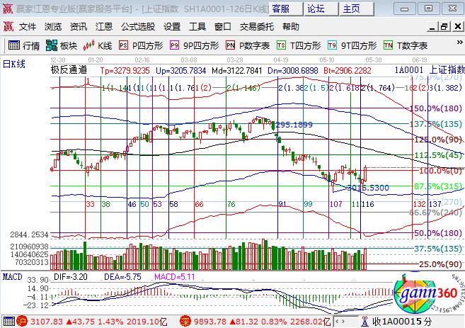 周四大盤低開高走放量大漲1.43%,權(quán)重集體發(fā)力意味著調(diào)整暫時(shí)告一段落,后勢主基調(diào)二八能否平分秋色,待市場揭曉答案。板塊方面,大金融、煤炭、地產(chǎn)、石油等權(quán)重輪番表演,環(huán)保和家電逆勢下跌;題材方面,雄安概念一枝獨(dú)秀,次新最弱,個(gè)股上漲居多但二八分化嚴(yán)重。技術(shù)方面,日線突破江恩百分比零度3097點(diǎn),上方45度位置3150是近期上漲阻力位置,當(dāng)前位處于極反通道弱勢外軌線和生命線懸空位置,短期遇強(qiáng)勢外軌線壓力,盤中預(yù)計(jì)圍繞零度位置上下震蕩,盤面上工農(nóng)中建尾盤甩貨,看商業(yè)銀行是否接力,主板白馬板塊啟動(dòng)以后,至少不會(huì)嘎然而止,熱點(diǎn)切換到8股則盤面賺錢效應(yīng)激活。存量資金博弈,生命線是前行的重要阻力,整體倉位保持在5成,,3097、3080為日內(nèi)支撐,3125、3150為日內(nèi)阻力,僅供參考,不構(gòu)成任何投資建議。
