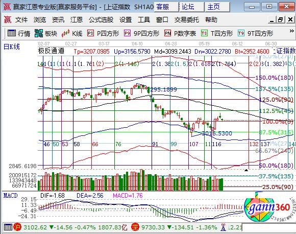 大盤周四低開震蕩下跌0.47%,深成指和創(chuàng)業(yè)板跌幅較大分別下跌1%和2%,市場再現(xiàn)百股跌停模式。板塊方面,保險、銀行、釀酒、家電和石油逆勢上漲,權(quán)重僅券商小跌;題材方面,次新、可燃冰、國產(chǎn)軟件、高送轉(zhuǎn)領(lǐng)跌,個股普跌成交量較前日略微放量。技術(shù)方面,滬指江恩百分比零度3097位置再度獲得支撐,收盤勉強站上3100點,預(yù)計市場走勢如5月26號所言,圍繞在零度與極反通道構(gòu)成的空間運行,昨日盤中已提醒短周期15將要失守,今天30、60分鐘生命線會形成盤中支撐,操作上控制倉位在5成以下,針對波段股進行差價操作,待市場有賺錢效應(yīng)后再開新倉,3089、3078為日內(nèi)支撐,3118、3128為日內(nèi)阻力,僅供參考,不構(gòu)成任何投資建議。