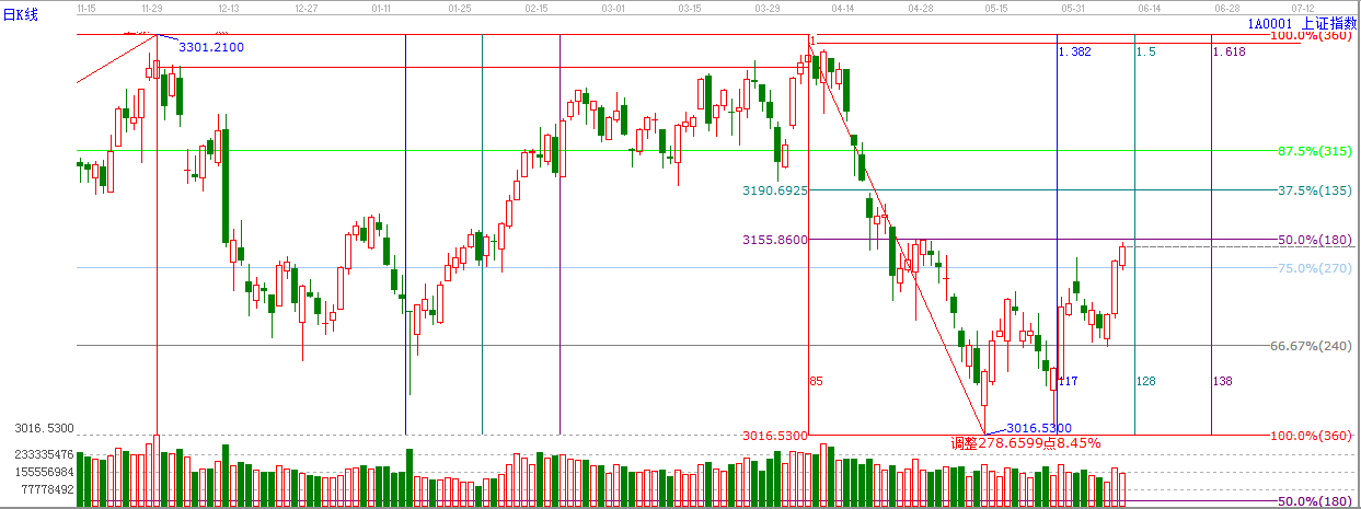 依據(jù)贏家江恩技術(shù)工具分析得出:周四,午后在保險的帶領(lǐng)下,滬指如期向上試探日線生命線3155點附近,當(dāng)前60日線是3172點附近。3155--3172點構(gòu)成一個區(qū)間阻力,此區(qū)間指數(shù)大概率會有一個反復(fù)震蕩,支撐位暫時關(guān)注3135點附近。所以適當(dāng)控制倉位,不可隨意追高,以低位潛伏為主。建議重點關(guān)注中報業(yè)績預(yù)期良好的超跌股,時間上,關(guān)注6月12日,6月23日。