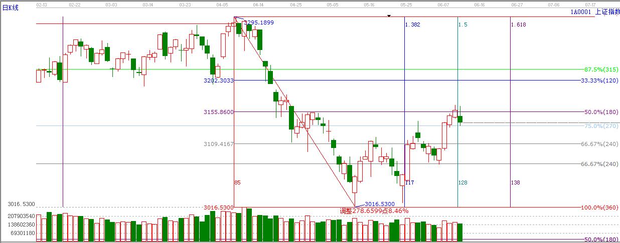 依據(jù)贏家江恩技術(shù)工具分析得出:周一,6月12日時(shí)間窗口,滬指遇阻回落收陰,在增量資金不足下,回調(diào)需求盡顯,明日繼續(xù)考驗(yàn)3135點(diǎn)支撐。不破維持高位震蕩,切勿追漲,破位有機(jī)會(huì)回落江恩240度線3109附近。短期指數(shù)回調(diào)仍是低吸上車的良機(jī),尤其是超跌的中小板,將再次迎來低吸周期,可重點(diǎn)關(guān)注中報(bào)業(yè)績(jī)預(yù)期良好的超跌標(biāo)的。