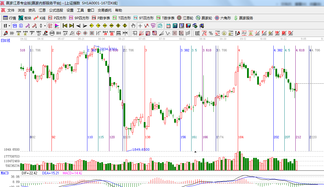 ★依據(jù)贏家江恩系統(tǒng)波段百分比延伸提示:江恩百分比0度是2160;