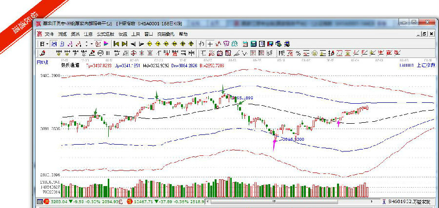 【贏家江恩點評:極反通道工具可幫助用戶解決大盤或個股趨勢判斷、價格買賣點,在日內(nèi)差價高拋低吸方面更能提示其優(yōu)勢。】